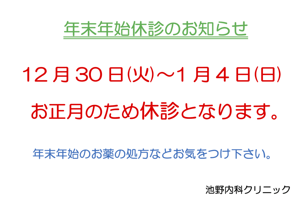 休診:令和7年12月30日(火曜日)〜令和8年1月4日(日曜日)